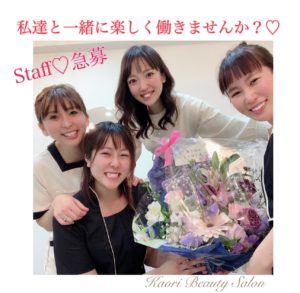 KAORI BEAUTY SALONでは、業務拡大を計画し、【急募】で【エステティシャンを1名】募集いたします!!