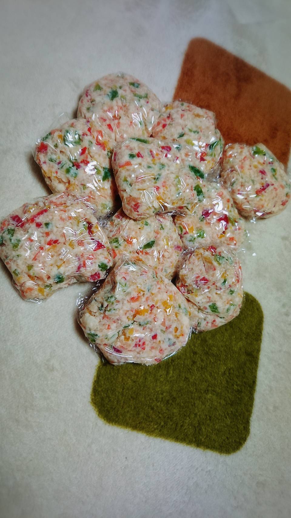 鳥ひき肉、豆腐、パプリカ、ピーマン、人参、生姜が入っております💪✨